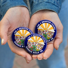 Harris Walz For Brighter Future Sun And Daisy Presidential Election Pin Button