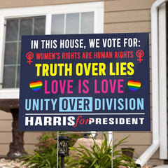 In This House We Vote For Harris Women's Rights Unity Yard Sign